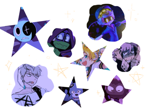 ⟡ till (alnst) ⟡ astro (dandy's world) ⟡ mitsuba (tbhk) ⟡ kagamine len (vocaloid) ⟡ dogday (ppt: 3) ⟡ crona (soul eater) ⟡ stardust cookie (cr:k) ⟡ haro (cotl) ⟡ goat (cotl) ⟡ donatello (rottmnt) ⟡ cosmog (pokémon) ⟡ n (murder drones) ⟡ bonnie (fnaf) ⟡